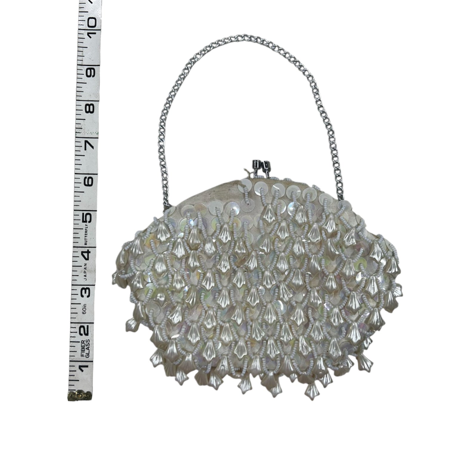 1950s Small Iridescent Shell and Beaded Jeweled Evening Clutch / Crystal Hand Bag
