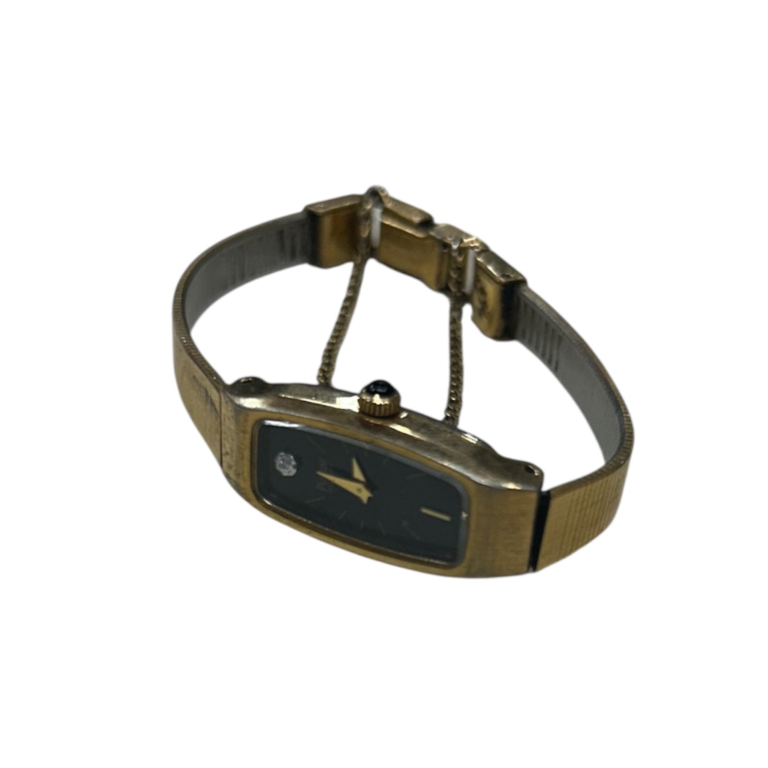 Pulsar Gold Tone Stainless Steel Black Diamond Watch - Vintage